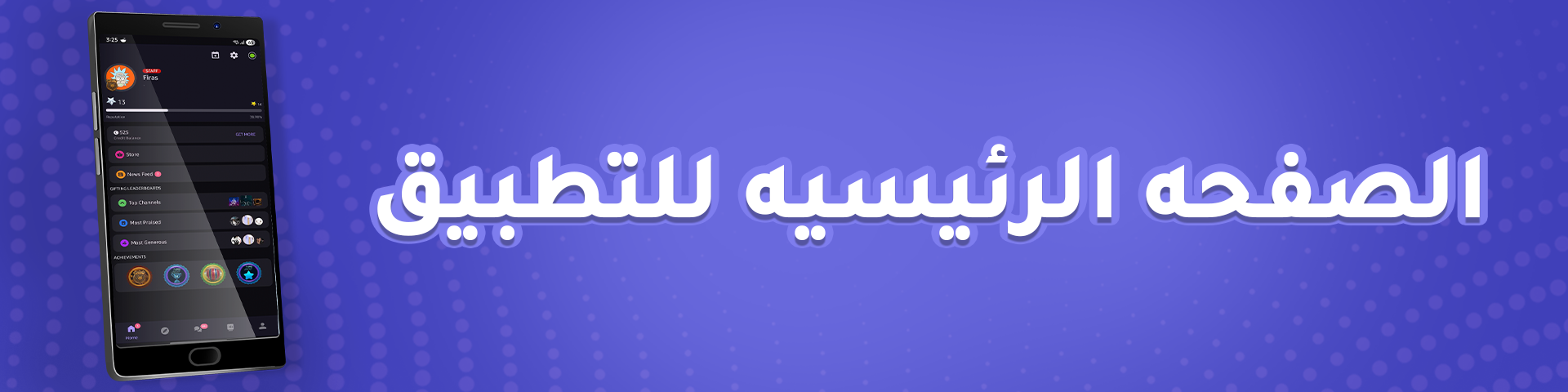 تحتوي الصفحة الرئيسية على مجموعة متنوعة من الأيقونات التي تسهّل عليك التنقل داخل التطبيق، مثل: