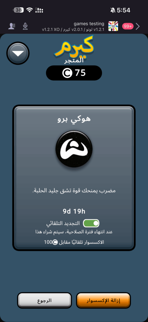 عند انتهاء فترة الـ10 أيام، سيتم إزالة الإكسسوار تلقائيًا من تبويب المخزن، إلا إذا كنت قد فعّلت خيار التجديد التلقائي.