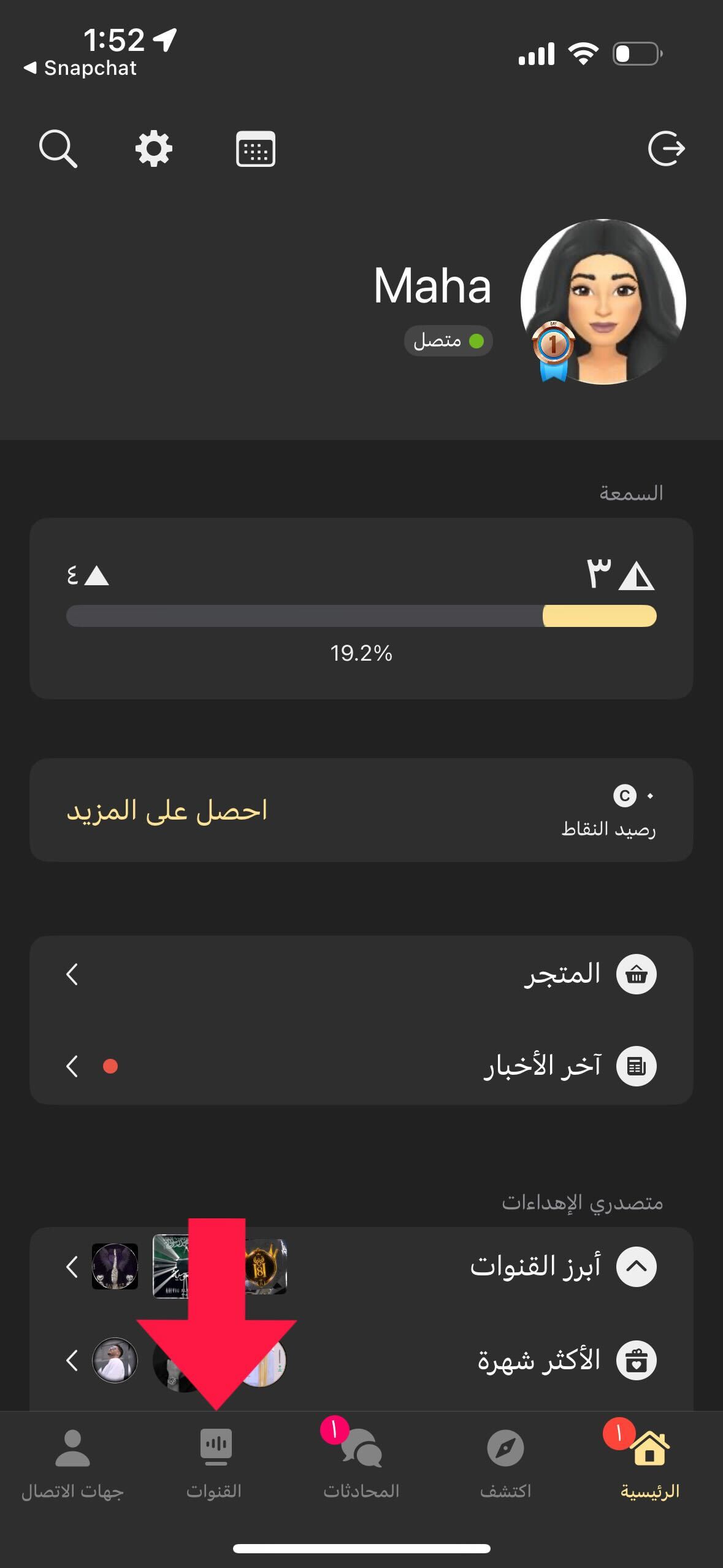من الصفحة الرئيسية، اضغط على خيار القنوات الموجود في أسفل الشاشة.