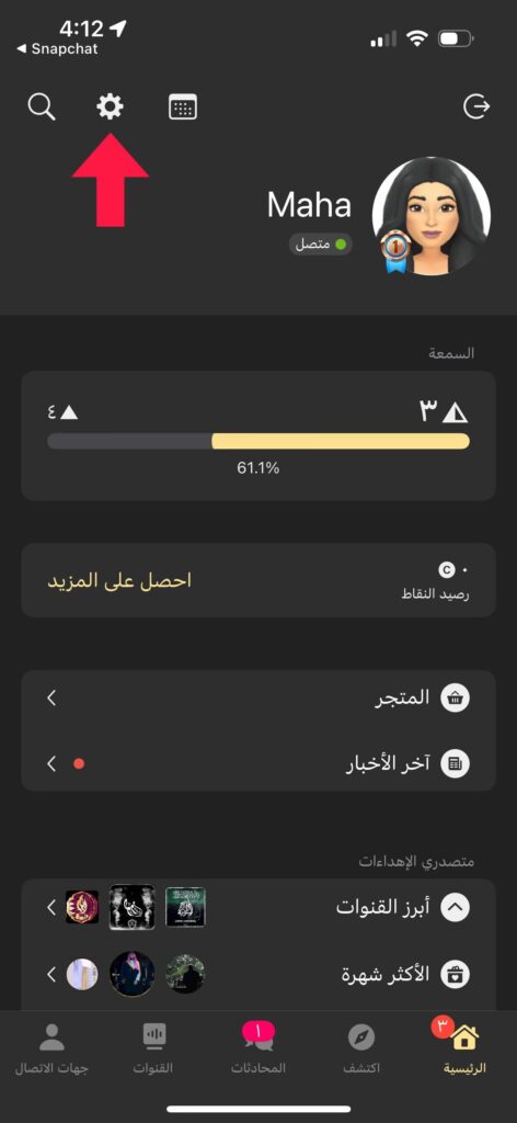 من قائمة الخيارات في الشاشة الرئيسية، اضغط على أيقونة "الإعدادات".
