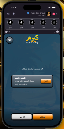 3-سيظهر لك شاشة تبيّن لك أن خيار دعوة أصدقاءك "غير مفعّل"، قم بتفعيله ثم اضغط على "إنشاء" مرة أخرى.