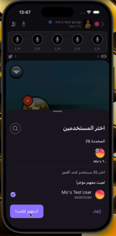 -زر “ادعهم للعب!“ يتفعّل بمجرد اختيار شخص واحد أو أكثر.