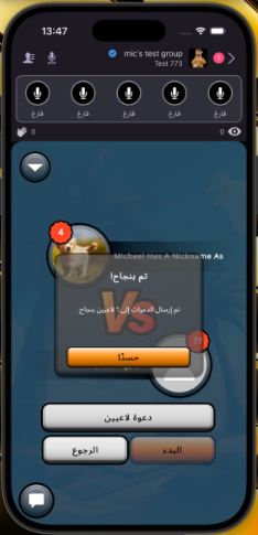 6-اضغط "ادعهم للعب!" لإرسال الدعوة. ستظهر رسالة تأكيد واضحة عند الإرسال، أو رسالة تبيّن عدم وصول الدعوات بنجاح في حال حدوث خطأ ما.