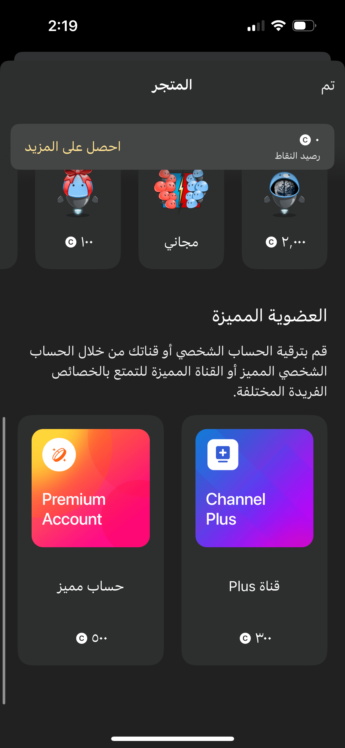 -العضوية المميزة للحسابات والقنوات