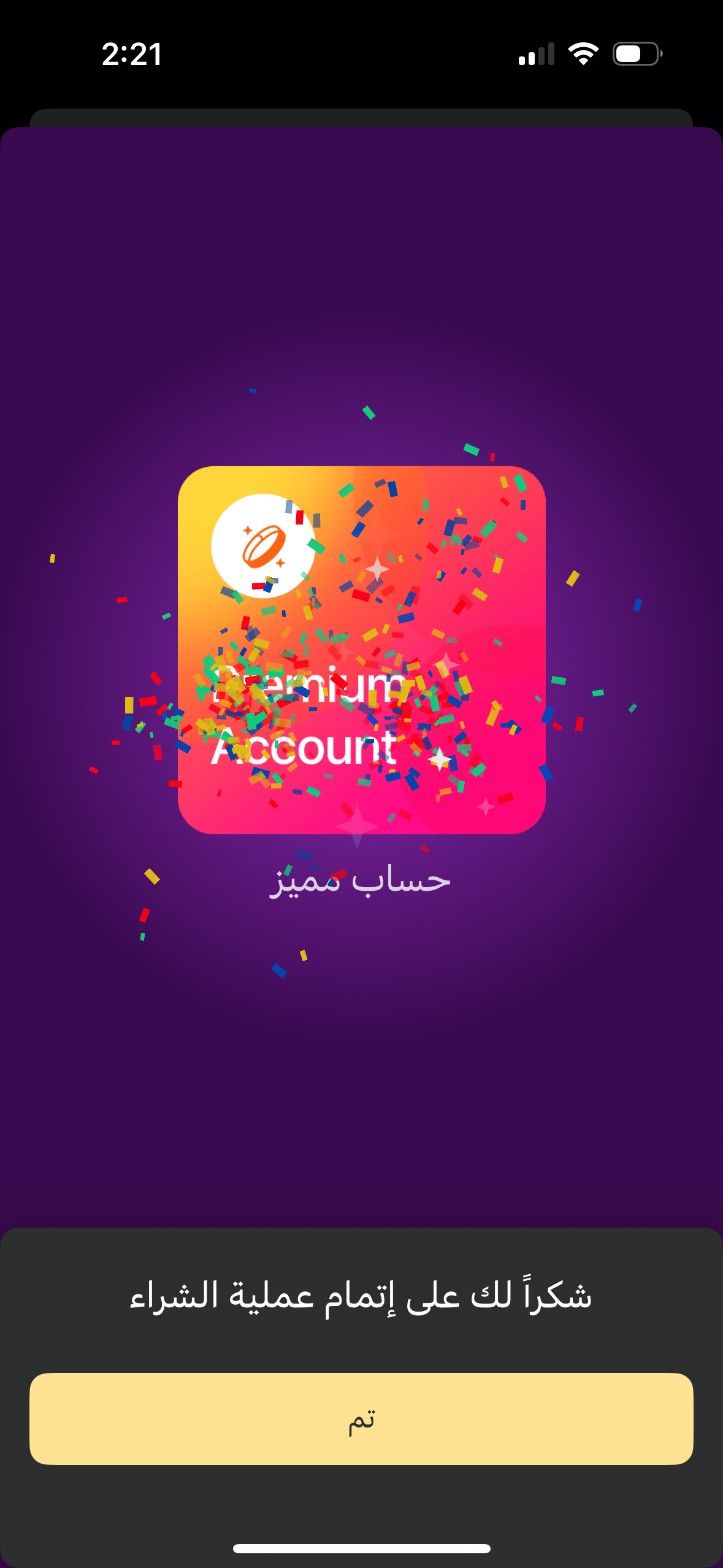 سيتم تفعيل الحساب المميز فوراً، وستحصل على كافة الامتيازات المرتبطة به.